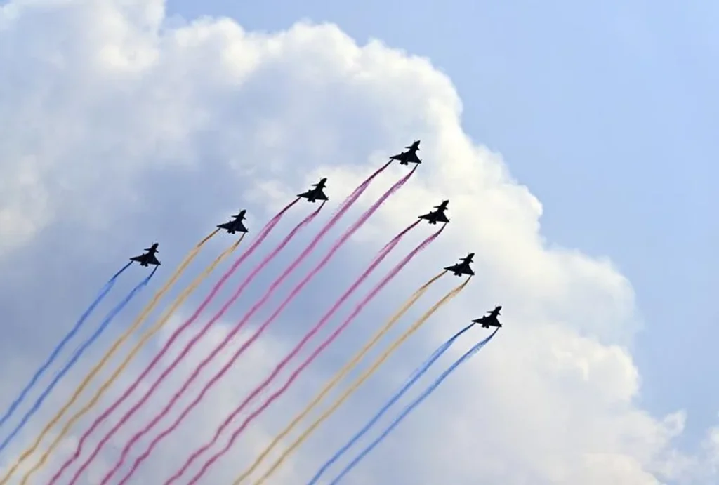 Helicópteros sobrevolaron la Plaza Tian’anmen con pancartas que decían “La justicia prevalece”, “La paz prevalece” y “El pueblo prevalece”. Las tropas marcharon en formaciones compactas y poderosas, con el rostro iluminado por la confianza y el orgullo.