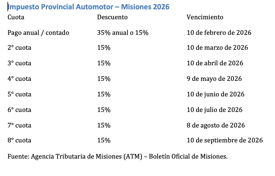 – Agencia Tributaria de Misiones (ATM): cuadro oficial de vencimientos y bonificaciones, Boletín Oficial de Misiones.